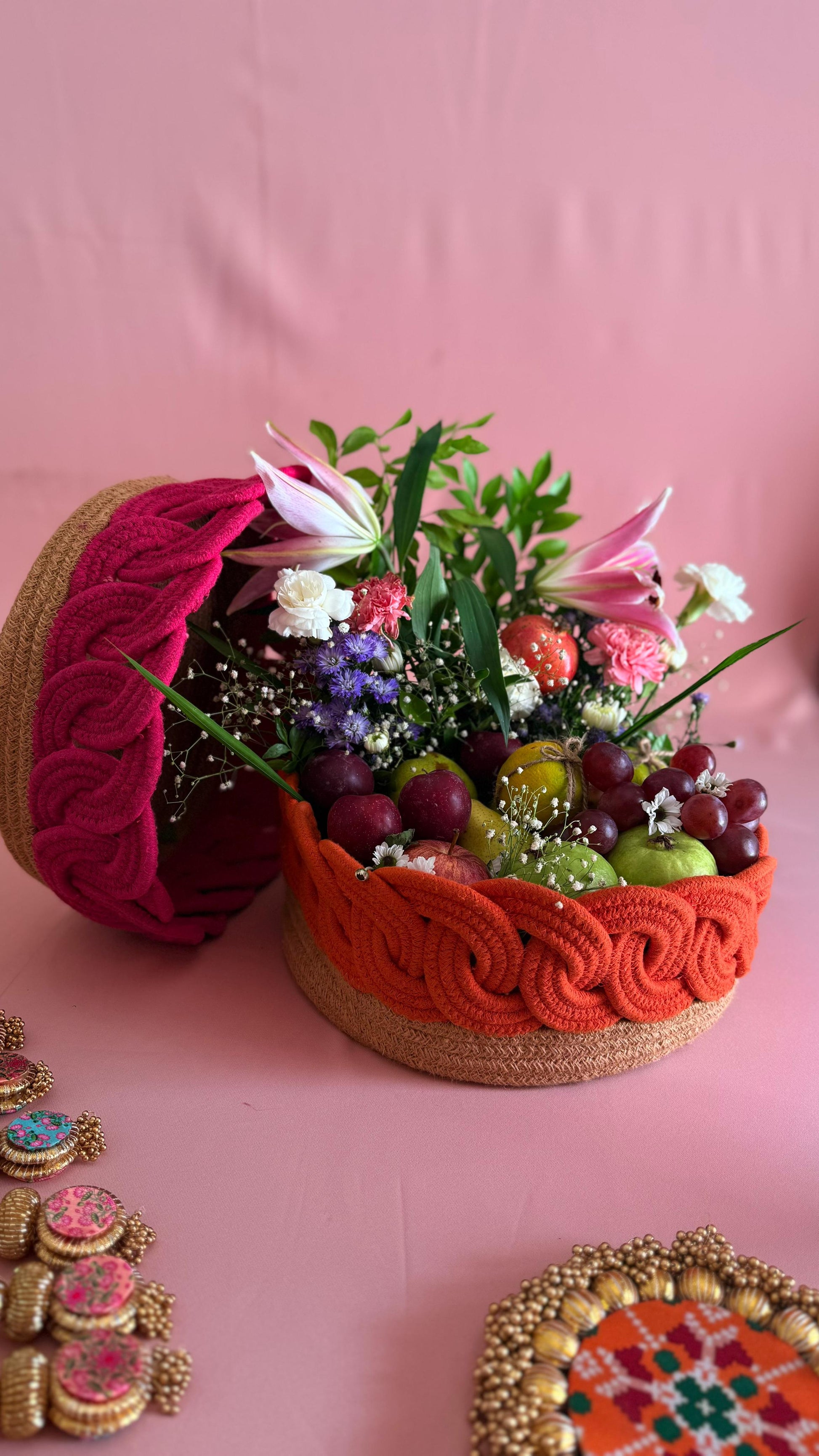 These handcrafted, eco-friendly baskets make the perfect base for fruit gifting. Their vibrant colours add joy to every occasion. An exclusive in-house design, crafted with care and sustainability in mind